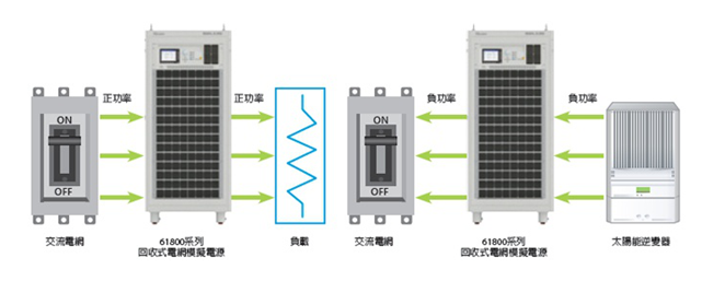 Chroma 61800系列電網(wǎng)模擬電源不僅可對外供電,也具備100%電流回灌的能力,是能源回收式的電網(wǎng)模擬電源,其在四象限工作的能力符合微電網(wǎng)測試的需求。Chroma 61800系列產(chǎn)品的輸入和輸出端已包含隔離設(shè)計,因此對于模擬微電網(wǎng)的待測物端不需要另外安裝隔離裝置。