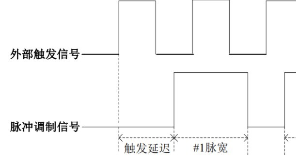 外部觸發(fā)時(shí),射頻信號(hào)源接收從后面板【TRIGGERIN】連接器輸入的外部觸發(fā)信號(hào)。每次接收到一個(gè)具有指定極性的TTL脈沖時(shí),就啟動(dòng)一次脈沖調(diào)制。欲指定TTL脈沖的極性,按【觸發(fā)沿】按鍵,選擇“上升沿”或“下降沿”,默認(rèn)為“上升沿”。
