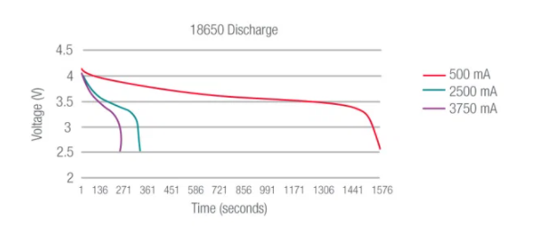 電池可以最大速率支持放電。但是,如果以該值的一小部分放電,鋰離子電池將產(chǎn)生更高的容量。低溫會影響電壓和容量。