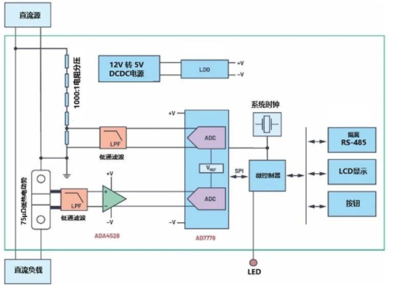 3.通過分析ADI直流電能表設計實例,來了解一下電動車充電樁直流電能表設計應該怎樣才能實現(xiàn)。
