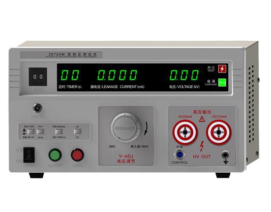 其工作原理是:把一個(gè)高于正常工作的電壓加在被測(cè)設(shè)備的絕緣體上,持續(xù)一段規(guī)定的時(shí)間,加在上面的電壓就只會(huì)產(chǎn)生很小的漏電流,則絕緣性能比較好。程控電源模塊、信號(hào)采集調(diào)理模塊和計(jì)算機(jī)控制系統(tǒng)三個(gè)模塊組成測(cè)試系統(tǒng)。選擇耐壓儀的2個(gè)指標(biāo):最大輸出電壓值及最大報(bào)警電流值的數(shù)值。