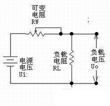 工作原理:先用下面的圖來說明線性穩(wěn)壓電源調(diào)節(jié)電壓的原理。如下圖所示,可變電阻RW跟負(fù)載電阻RL組成一個(gè)分壓電路,輸出電壓為:
