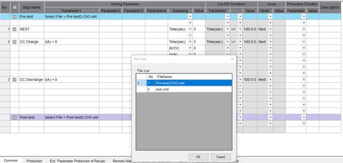 Chroma能源回收式充放電機(jī)系列17020/17020E/17040/17040E,可針對不同電壓的電池包,搭配專屬的BatteryPro軟件,進(jìn)行解鎖行為控制。舉例來說,BatteryPro軟件內(nèi)Pretest/ Posttest功能,將測試前的準(zhǔn)備與解鎖作業(yè)、測試后的結(jié)束步驟設(shè)置成測試工步,使用者可自行編輯Pretest/ Posttest流程執(zhí)行指定動作,使測試流程高度符合使用者需求亦可全程自動化。在一般CAN通信上,BatteryPro軟件可依據(jù)不同測試流程,插入內(nèi)置的CAN write function工步,并針對特定CAN ID位置,控制發(fā)送與接收CAN信號,進(jìn)行各種指令,如繼電器開關(guān)控制,在操作上更加彈性且貼近實(shí)際使用情境。