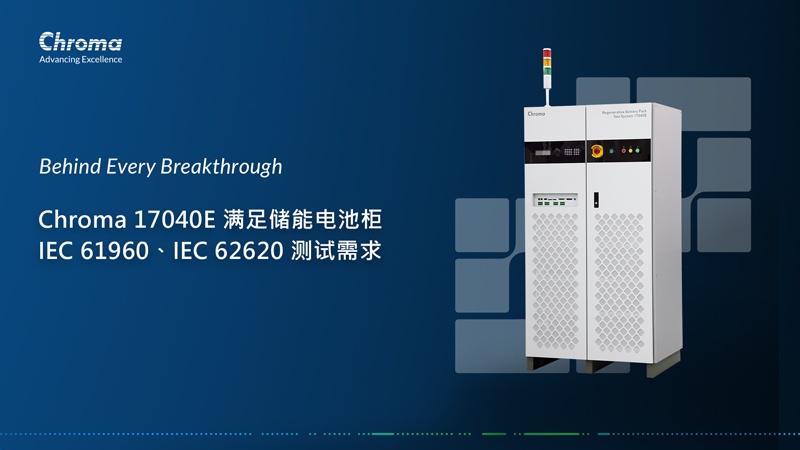 17040E 系列機(jī)種在性能和精度上進(jìn)行了升級,可滿足不同電壓等級的電池產(chǎn)品需求,從工商用儲能電池柜到電網(wǎng)級儲能電池柜,提供更靈活、可靠的測試解決方案。Chroma 充放電機(jī)系列已廣泛應(yīng)用于儲能電池測試,協(xié)助業(yè)界確保產(chǎn)品質(zhì)量,推動儲能技術(shù)的持續(xù)進(jìn)步與市場發(fā)展。Chroma 始終站在技術(shù)創(chuàng)新的最前線,為每一次突破提供堅實后盾。Behind Every Breakthrough,Chroma 與您同行。