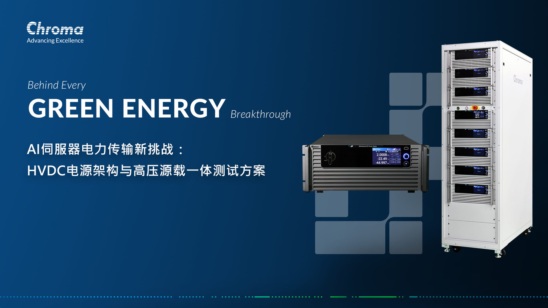 AI 服務器市場正邁向更高效、更靈活,并朝向更高功率的HVDC電源架構發(fā)展。Chroma雙向直流電源62450D-2000HL型號,憑借其供電與回饋式負載的雙重特性,以高效率的能源回收機制及靈活的應用模式,為AI技術發(fā)展和綠能永續(xù)的背后力量。