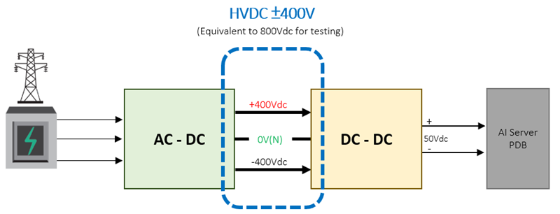 Sidecar架構主要由AC-DC與DC-DC兩大模塊構成,HVDC ±400V則為這兩模塊間的關鍵電壓參數(shù):