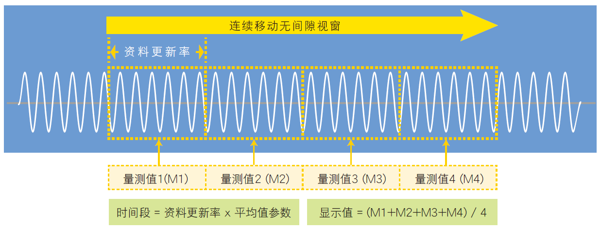 參數(shù)測(cè)量方式:在一時(shí)間段內(nèi)將連續(xù)移動(dòng)無(wú)間隙視窗所有量測(cè)到的值量平均。請(qǐng)注意,時(shí)間段(Time frame)的時(shí)間設(shè)置等同于Data Update Rate(資料更新率) x AVG(平均值參數(shù))。