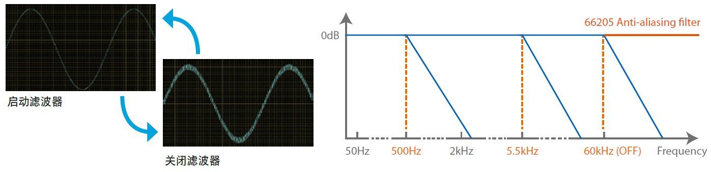 Line Filter是具有高衰減率(≥70dB)的數(shù)位低通濾波器。當(dāng)Line Filter設(shè)定啟動(dòng)時(shí),測(cè)量值不會(huì)包含高頻分量,例如: 切換式電源的高頻噪音部分。 66205提供三組Line Filter,截止頻率為OFF,500 Hz和5.5 kHz。 5.5kHz的Line Filter規(guī)格符合IEC 61000-3-2國(guó)際標(biāo)準(zhǔn)之設(shè)備要求,建議諧波量測(cè)時(shí)將濾波器開(kāi)啟。