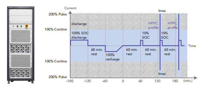 車用電池基于國(guó)際測(cè)試標(biāo)準(zhǔn)進(jìn)行功率能力測(cè)試與行駛模擬來(lái)評(píng)價(jià)電池特性,高倍率電流或功率的測(cè)試參數(shù)是基于電池操作條件(如BEV、PHEV與HEV)而制定,其輸出時(shí)間皆在30S以內(nèi),為其購(gòu)置滿功率設(shè)備成為無(wú)形的冗余支出,Chroma 17010H不僅提供200%的脈沖電流與功率輸出能力,更能有效降低設(shè)備成本與設(shè)備空間。