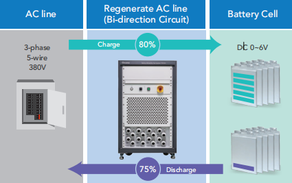 Chroma 17010H將電池芯放電時(shí)的電能回饋到交流電網(wǎng)取代負(fù)載消耗能量的方式,可降低大量廢熱產(chǎn)生,實(shí)現(xiàn)低碳排的綠能制造,降低配電需求、節(jié)省運(yùn)轉(zhuǎn)電力與空調(diào)成本。