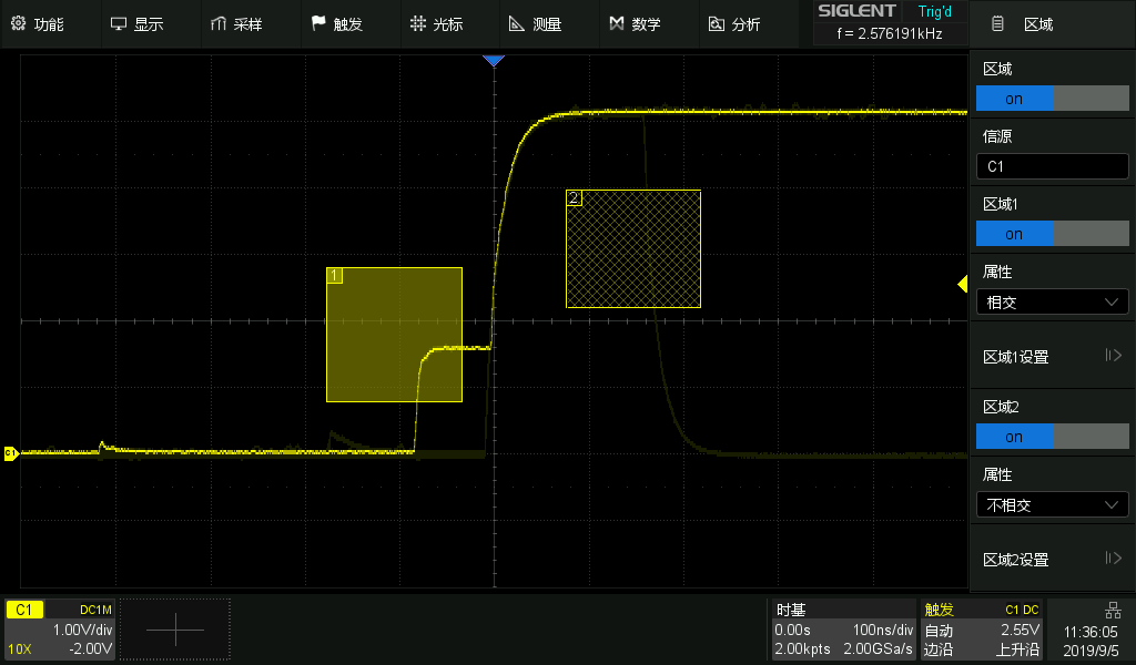 SDS3000X HD系列示波器提供豐富的觸發(fā)類型,含邊沿、間隔、超時(shí)、視頻、串行總線、區(qū)域觸發(fā)等,其中,區(qū)域觸發(fā)不同于傳統(tǒng)觸發(fā),它可應(yīng)用于參數(shù)特征尚不明確的偶發(fā)信號(hào),僅需使用鼠標(biāo)或者觸摸創(chuàng)建并定義區(qū)域即可完成信號(hào)的捕捉??偩€觸發(fā)支持 I2C、SPI、CAN、CAN FD、FlexRay、I2S、MIL-STD-1553B、SENT等多種總線,提供嵌入式、汽車、計(jì)算機(jī)等串行總線的測(cè)試解決方案。