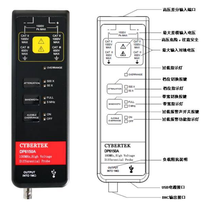 DP6000 系列高壓差分探頭是具有浮地測量功能的高壓差分探頭。其帶寬最高達(dá)到 200MHz,滿足了大部分測試系統(tǒng)的需要;豐富的量程可供選擇,其差動測量電壓范圍滿足大部分測試電路的要求;用戶可進(jìn)入測試模式,調(diào)整偏置電壓,探頭長期使用后若出現(xiàn)失調(diào)現(xiàn)象,用戶可進(jìn)入該模式,調(diào)整偏置,實現(xiàn)歸零;電子輕觸式按鍵,使得使用壽命更長;具有 5MHz 帶寬限制功能選擇,5MHz頻率帶寬滿足大部分開關(guān)電源中 FETs 的開關(guān)頻率的測量,并可以濾除更高頻率的噪聲和干擾;帶有聲光報警功能,且可手動關(guān)閉聲音報警功能,更具有人性化設(shè)計;USB 供電接口,使用更加方便靈活;探頭配備標(biāo)準(zhǔn)的 BNC 輸出接口,可與任何廠家的示波器配合使用(要求示波器的輸入阻抗設(shè)置為 1MΩ;當(dāng)選擇 50Ω時,衰減倍數(shù)會多衰減一倍),測量被測電路波形;自動保存功能,防止掉電后用戶重復(fù)操作。探頭具備良好的共模噪聲抑制能力,輸入端具有較高的輸入阻抗和較低電容,可以準(zhǔn)確高速地測量差分電壓信號??蓮V泛用于開關(guān)電源﹑變頻器﹑電子鎮(zhèn)流器﹑變頻家電和其它電氣功率裝置等的研發(fā)﹑調(diào)試或檢修工作中。