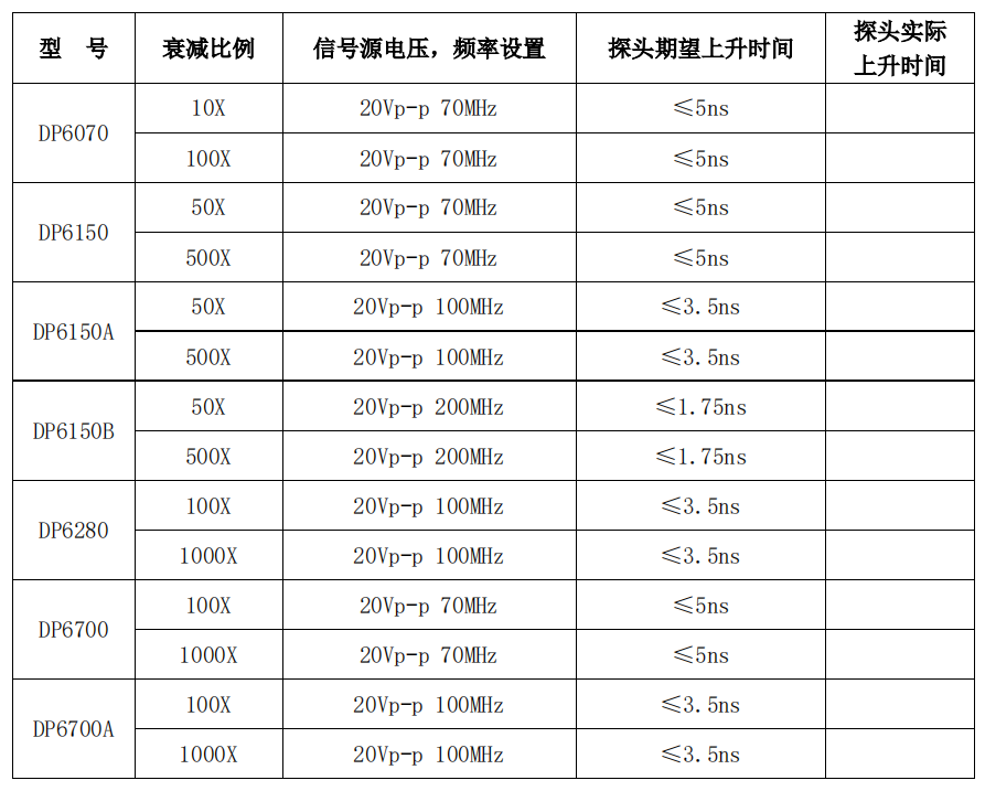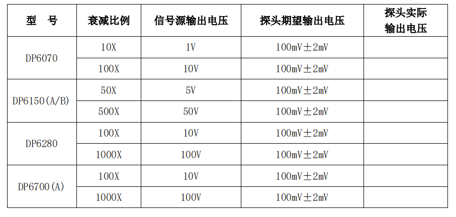 檔位(ATTENUATION):不同檔位代表不同量程范圍,例如 DP6150A:500X 表示最高測量電壓為 1500V;50X 表示最高測量電壓為 150V;DP6700A:1000X 表示最高測量電壓為7000V;100X 表示最高測量電壓為 700V;示波器衰減倍數(shù)應(yīng)該根據(jù)探頭的檔位選擇做相應(yīng)設(shè)置。
