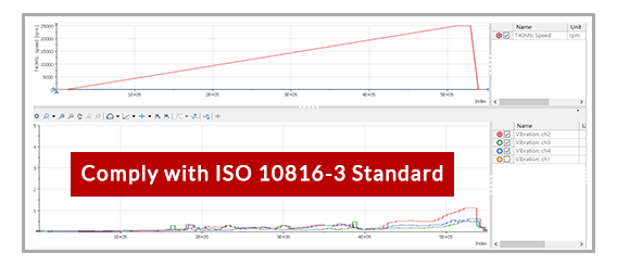 可利用監(jiān)控模塊量測動力計端電機與軸承箱以及DUT系統(tǒng),監(jiān)測和記錄測試過程中產(chǎn)生的振動,如果振動超過安全范圍,可以及時發(fā)出警報或停止測試,從而確保測試過程的安全和穩(wěn)定性。并可同步確保產(chǎn)品滿足特定的振動標準和規(guī)范。