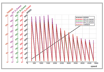 具備載入設定工況運轉(zhuǎn)之功能,透過匯入.CSV檔案,可程式設定測試電壓值、電流保護值、電機(負載端)轉(zhuǎn)速命令、電機(待測物端)轉(zhuǎn)矩命令等控制參數(shù)對應時間之工況。測試報告支援圖表輸出功能,可產(chǎn)生產(chǎn)品名稱、測試日期、測試參數(shù)等資訊??舍槍τ脩羲x擇的各項測試資料,產(chǎn)出時間與不同參數(shù)相對應的曲線圖及電機與電機驅(qū)動器效率云圖。